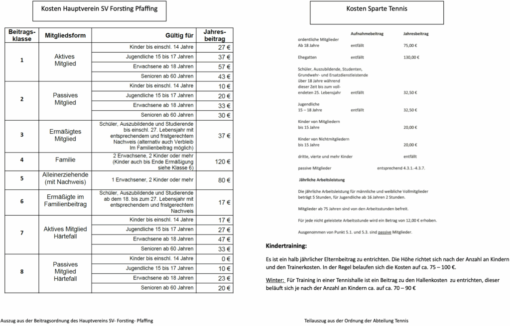 Tennis Jugend Mannschaften Tennisanlage Platzbelegung Anfahrt Mitgliedschaft Gastspieler Neumitglieder Satzung Funktionäre Tennis Jugend Mannschaften Tennisanlage Platzbelegung Anfahrt Mitgliedschaft Gastspieler Neumitglieder Satzung Funktionäre Tennis Mitgliedschaft Dies ist die Beitrittserklärung zur Abteilung Tennis. Der Mitgliedsantrag für den Hauptverein SV Forsting Pfaffing befindet sich unter https://www.sv-forsting.de/verein/mitgliedschaft/ Kostenübersicht Tennis Dies ist die Kostenübersicht für den Beitrag im Hauptverein SV Forsting Pfaffing und die Sparte Tennis. Mitglieder der Abteilung Tennis müssen auch Mitglied im Hauptverein sein. Für Familien und Kinder gibt es viele Vergünstigungen.